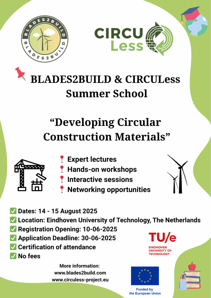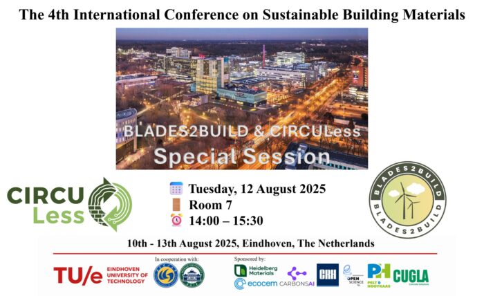 π CIRCULess and BLADES2BUILD are teaming up once again! π Weβre excited to announce a joint dedicated session at the 4th International Conference on Sustainable Building Materials, Eindhoven (ICSBM2025) in Eindhoven, The Netherlands. π‘ This special session will highlight cutting-edge innovations in sustainability, with a focus on reusing wind turbine blade waste in concrete and…
